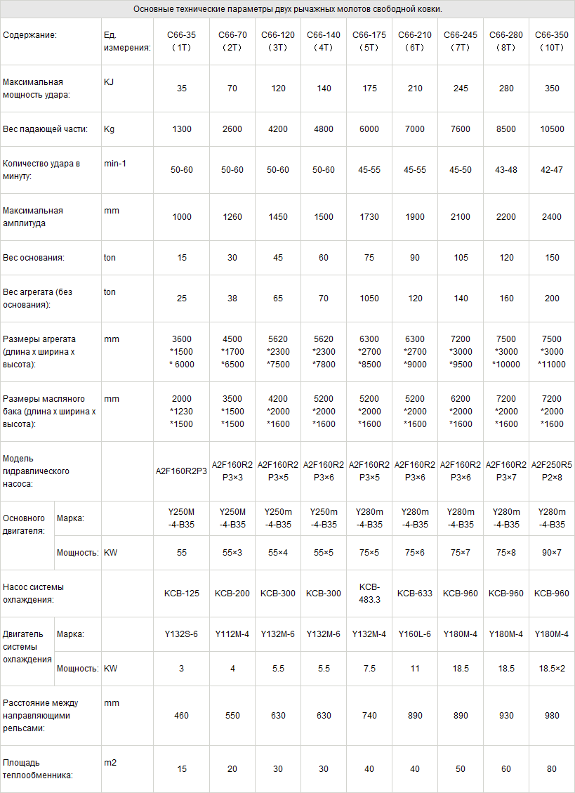 Электрогидравлические молоты разделяются на штамповочные и свободной ковки. Свободной ковки разделяются ещё на одно рычажные и двух рычажные.