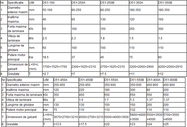 Masinile de laminat inele D51A si D51B sunt utilizate pe scara larga pentru semifabricate de inele de rulmenti, roti dintate si flanse.