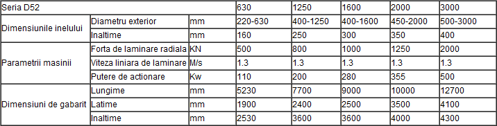 Masina de laminat radial inele seria D52 este comandata prin PLC (dispozitiv de comanda logic programabil), capatul inelului nu este laminat. La executarea procesului de laminare, se va alege varianta de laminare libera sau precisa. Dimensiunile inelului sunt afisate pe ecranul de afisare digital.