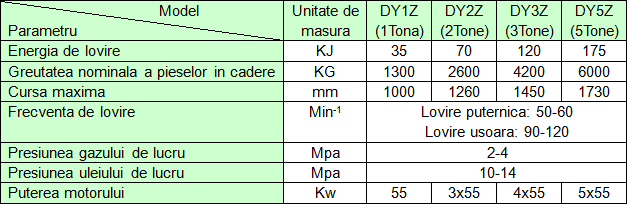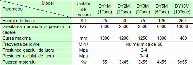 + Tip: Sistem de actionare mecanica pentru forjarea in matrita deschisa / Sistem de actionare mecanica pentru forjarea in matrita inchisa + Scopul de baza: Pentru a realiza ridicarea, tinerea in pozitie suspendata, lovirea puternica, lovirea usoara, coborarea lenta, apasarea si oprirea rapida a berbecului ciocanului…etc si toate tipurile de actiuni utilizate in lucrarile de forjare, energia de lovire a fost variata in functie de inaltimea de ridicare a berbecului ciocanului, in scopul satisfacerii cerintelor procesului de forjare. + Gama de echipamente furnizate