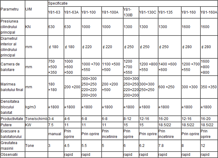 Presa hidraulica de balotat deseuri metalice seria Y81 poate fi utilizata in special la comprimarea tablelor metalice negre sau colorate. Acest lucru este foarte avantajos pentru transportul sau topirea acestor materiale.