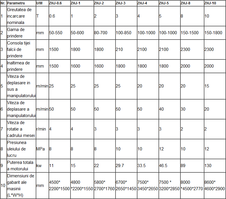 Manipulatorul de incarcare si alimentare din seria Z este o masina cu actionare mecanica si hidraulica combinata. In functie de tipurile de piese manipulate, manipulatoarele pot fi de tip sprijinire pe falca de prindere, fixare in falca de prindere sau de tip furca. Manipulatorul poate face urmatoarele miscari: deplasarea intregului manipulator, rotire a partii superioare a manipulatorului, inclinare a tijei falcii de prindere, oscilatie a tijei falcii de prindere, rotire a capului falcii de prindere.